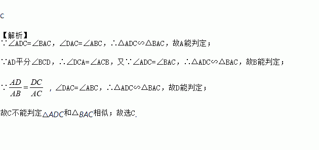 如图,在四边形ABCD中,如果∠ADC=∠BAC,那么下列条件中不能判定△ADC