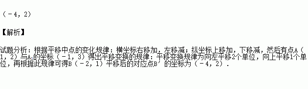 (3分)已知△ABC的顶点A的坐标为(1,2),经过平移后的对应点A′的坐标为(﹣1,3),则顶点B(﹣2,1)平移后的对应点B′的坐标为 .