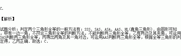 如图,已知△ABC的六个元素,则下列甲、乙、丙三个三角形中和△ABC全等的图形是( ).