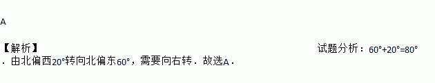 A. 右转80° B. 左转80° C. 右转100° D. 左转100°
