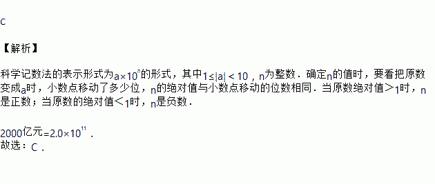潍坊市2018年政府工作报告中显示,潍坊社会经济平稳运行,地区生产总值增长8%左右,社会消费品零售总额增长12%左右,一般公共预算收入539.1亿元,7家企业入选国家“两化”融合贯标试点,潍柴集团收入突破2000亿元,荣获中国商标金奖.其中,数字2000亿元用科学记数法表示为( )元.(精确到百亿位)