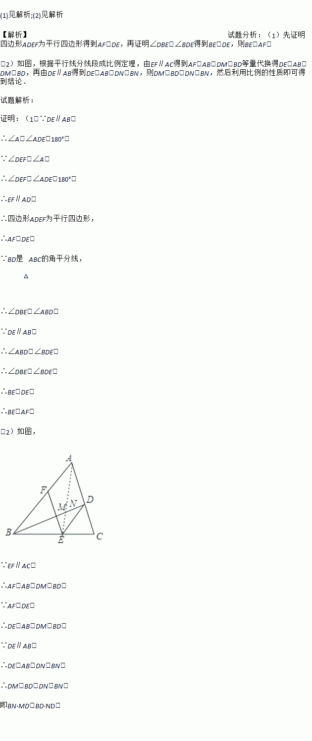 (2)设BD与EF交于点M,联结AE交BD于点N,求证:BN•MD=BD•ND.