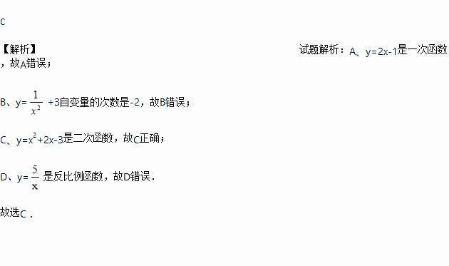 A. y=2x﹣1 B. y= C. y=x2+2x﹣3 D. y=