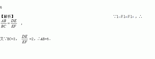如图,l1∥l2∥l3,BC=3, =2,则AB=___.