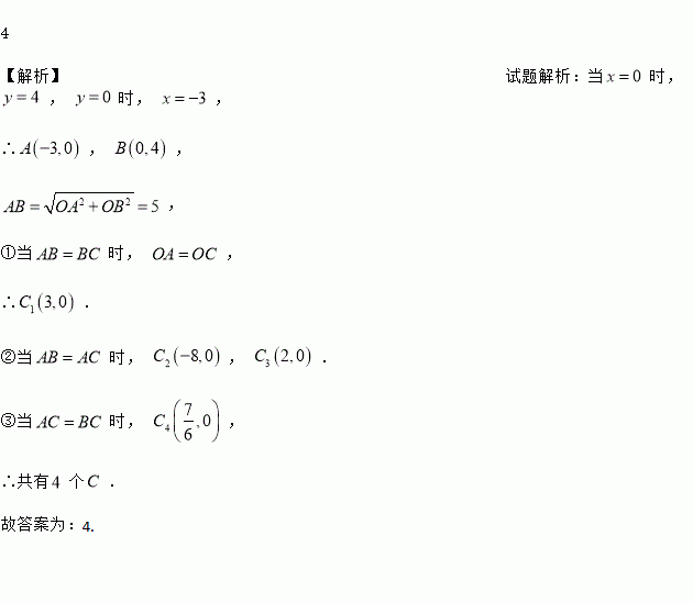 一次函数分别交轴、轴于、两点,在轴上取一点,使为等腰三角形,则这样的点有__________个.