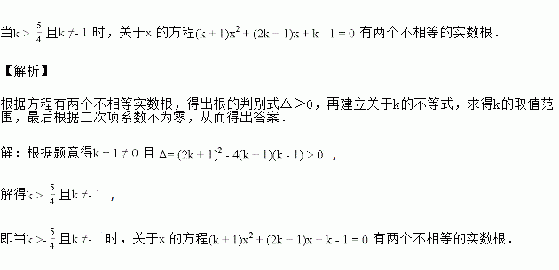 当为何值时,关于的方程有两个不相等的实数根?