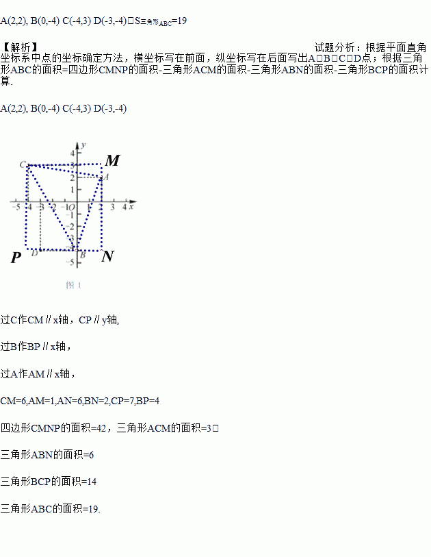 写出如图1所示的平面直角坐标系中A,B,C,D点的坐标,并计算三角形ABC的面积;