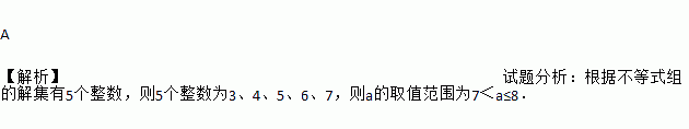 已知不等式组的解集中共有5个整数,则a的取值范围为( )