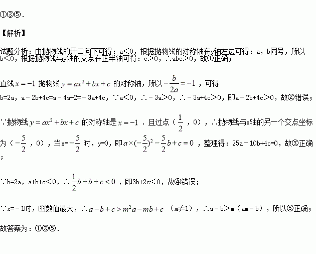 ,0),有下列结论:①abc>0;②a﹣2b+4c=0;③25a﹣10b+4c=0;④3b+2c>0;⑤a﹣b≥m(am﹣b);其中所有正确的结论是 .(填写正确结论的序号)