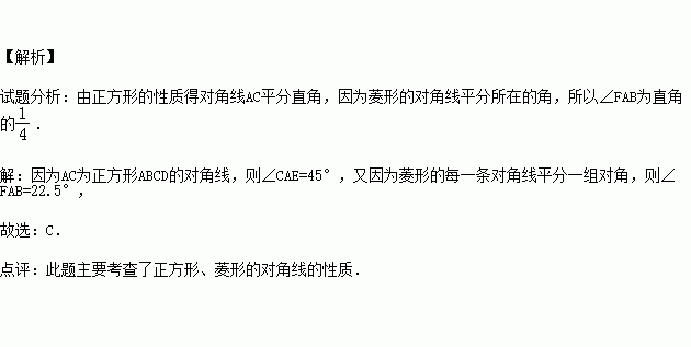 如图,以正方形ABCD的对角线AC为一边作菱形AEFC,则∠FAB=( )