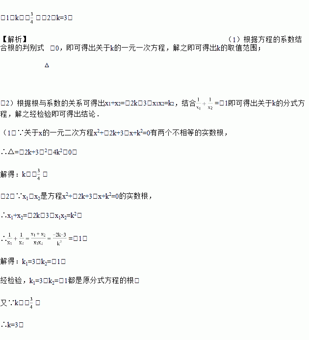 (1)求k的取值范围;