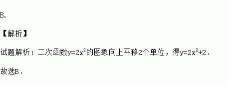 在平面直角坐标系中,将二次函数y=2x2的图象向上平移2个单位,所得图象的解析式为( )