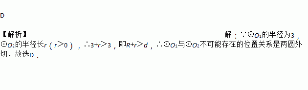 已知的半径为的半径长,如果,那么与不可能存在的位置关系是