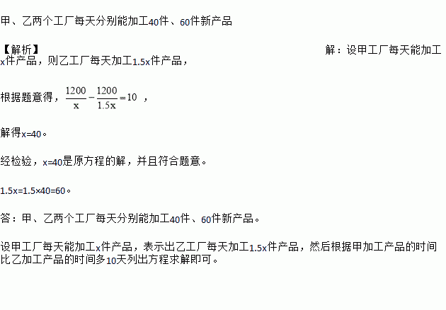 根据以上信息,求甲、乙两个工厂每天分别能加工多少件新产品.