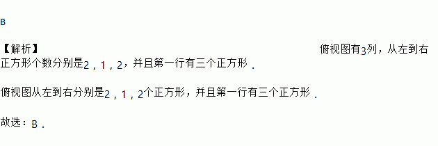 六个大小相同的正方体搭成的几何体如图所示,其俯视图是( )