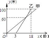 甲、乙两人进行跑步训练,他们所跑的路程y(米)与时间x(秒)之间的关系如图所示,则下列说法错误的是( )