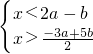分析:先把a、b当作已知把x的取值范围用a、b表示出来,再与已知解集相比较得到关于a、b的二元一次方程组,再用加减消元法或代入消元法求出a、b的值.