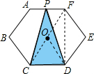 分析:由正六边形的性质可知AF∥CD,利用平行线得△PCD与△FCD的面积相等,圆心O为CF的中点,可知△FCD的面积为△OCD面积的2倍,再由△OCD面积占正六形ABCDEF的