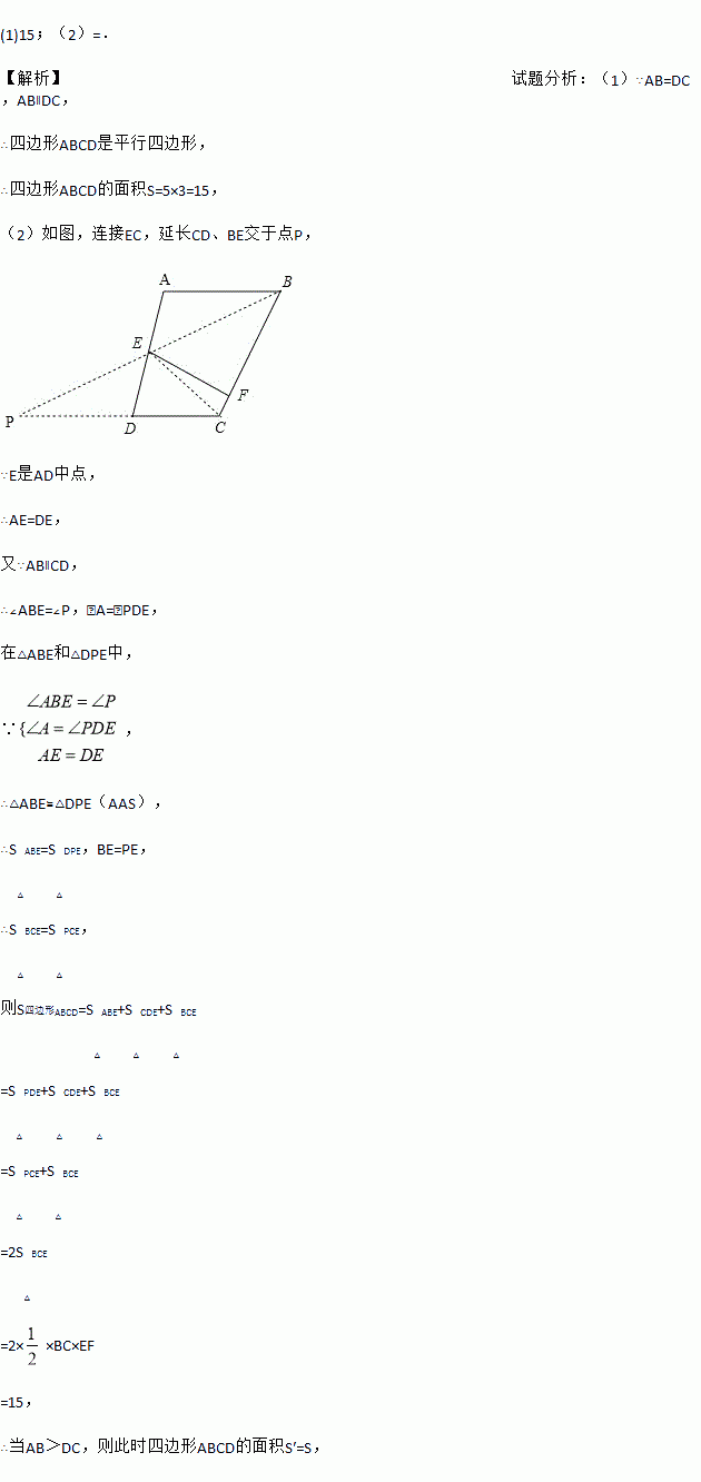 如图,在四边形ABCD中,AB∥DC,E是AD中点,EF⊥BC于点F,BC=5,EF=3.