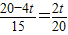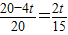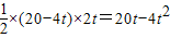 解答:解:(1)由题意得AP=4t,CQ=2t,则CP=20-4t,