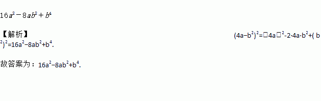 16a2-8ab2+b4 【解析】(4a?b2)2=(4a)2-2·4a·b2+( b2)2=16a2?8ab2+b4. 故答案为:16a2?8ab2+b4.