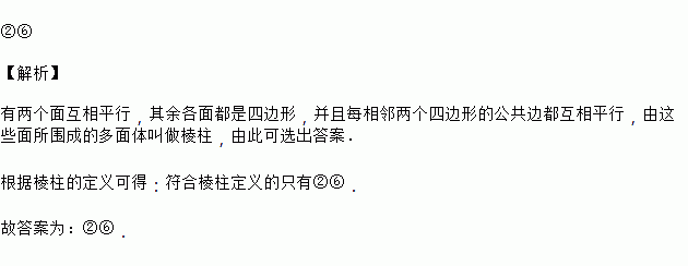 下列图形中,是棱柱的有____.(填序号)