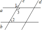 分析:由对顶角相等根据∠1的度数求出∠3的度数,可得出∠3与∠2互补,利用同旁内角互补两直线平行即可得到a与b平行.