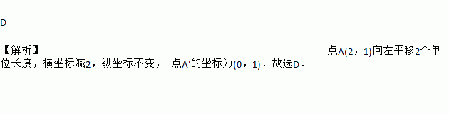将点A(2,1)向左平移2个单位长度得到点A′,则点A′ 的坐标是( )