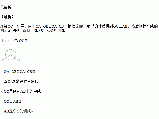 如图,直线AB经过⊙O上的一点C,并且OA=OB,CA=CB,求证:直线AB是⊙O的切线.