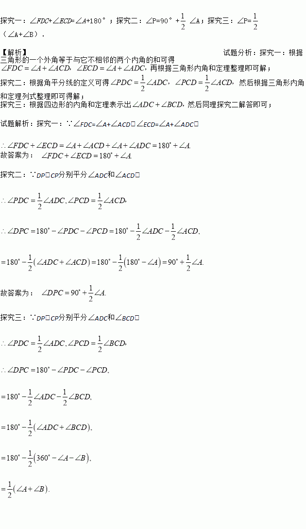 已知:如图3,在四边形ABCD中,DP,CP分别平分∠ADC和∠BCD,试利用上述结论探究∠P与∠A+∠B的数量关系.