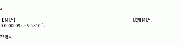 某种细胞的直径是0.00000095米,将0.00000095米用科学记数法表示为( )