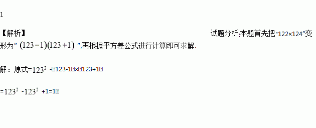 运用乘法公式进行简便计算:1232-122×124