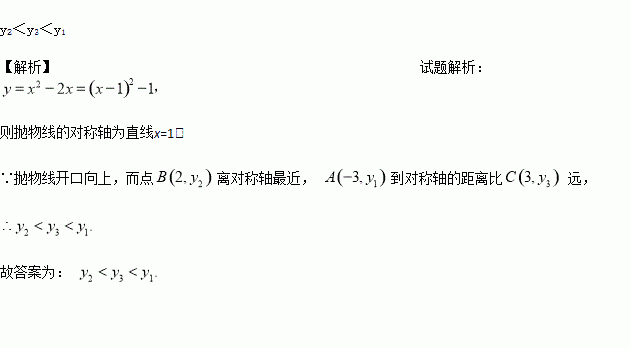 点A(-3,y1),B(2,y2),C(3,y3)在抛物线y=x2-2x上,则y1,y2,y3的大小关系是______.(用“<”连接)
