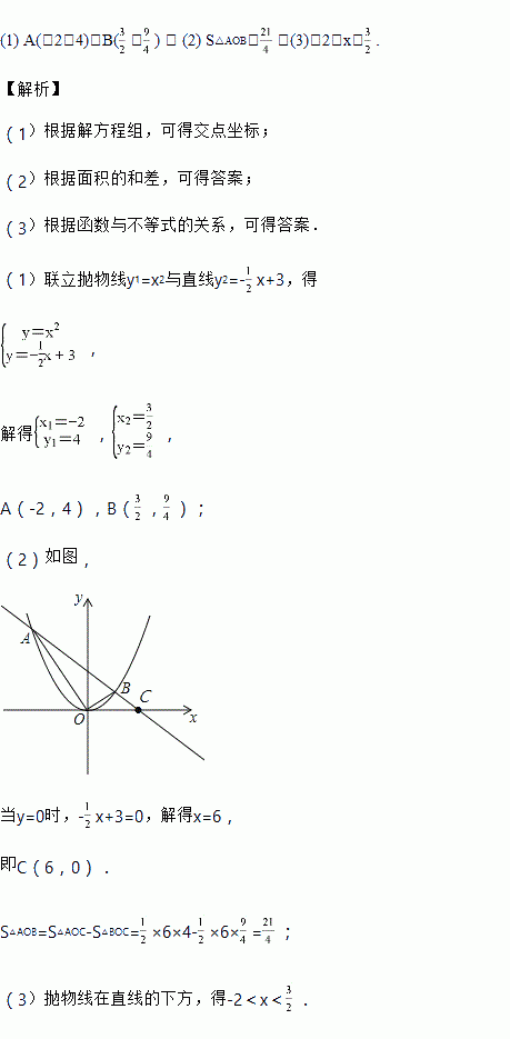 已知抛物线y1=x2与直线y2=-x+3相交于A,B两点.