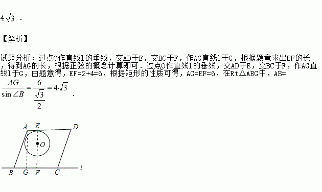 如图,⊙O的半径为2,圆心O到直线l的距离为4,有一内角为60°的菱形,当菱形的一边在直线l上,另有两边所在的直线恰好与⊙O相切,此时菱形的边长为 .