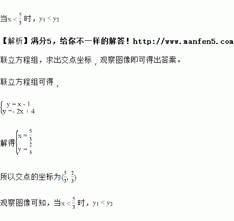 求一次函数与的交点坐标,并在同一平面直角坐标系中画出图像,然后根据图像回答:当去何值时?