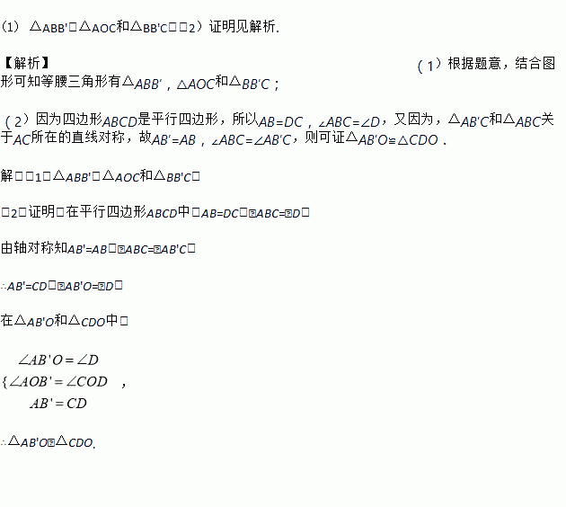 如图,四边形ABCD是平行四边形,△AB'C和△ABC关于AC所在的直线对称,AD和B'C相交于点O,连接BB'