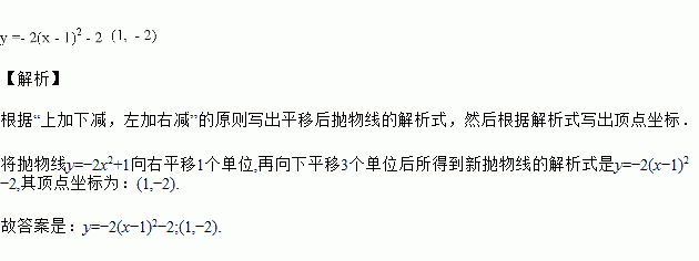 将抛物线向右平移个单位,再向下平移个单位后所得到新抛物线的解析式是________,顶点坐标是________.