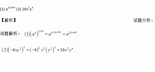 计算:(1)(a4)3+m (2)(-4xy2)2