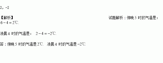 某地一天中午12时的气温是6°C,傍晚5时的气温比中午12时下降了4°C,凌晨4时的温度比傍晚5时还低4°C,问傍晚5时的气温是多少?凌晨4时的气温是多少?