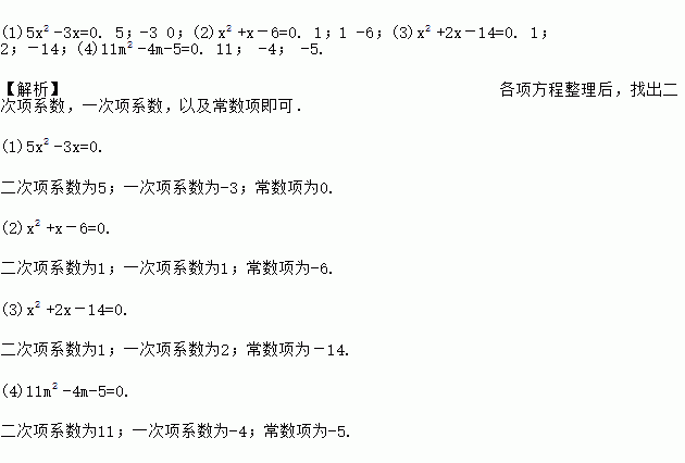 把下列方程化成一般形式,并写出它们的二次项系数、一次项系数及常数项.