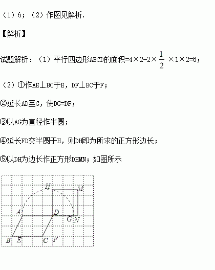 (2)在网格上请画出一个正方形,使正方形的面积等于平行四边形ABCD的面积.(尺规作图,保留作图痕迹)并把主要画图步骤写出来.