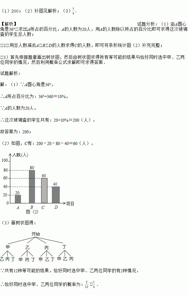 (3)在平时的小小外交家的课堂学习中,甲、乙、丙、丁四人表现优秀,现决定从这四名同学中任选两名参加全国英语口语大赛,求恰好同时选中甲、乙两位同学的概率(用树状图或列表法解答).
