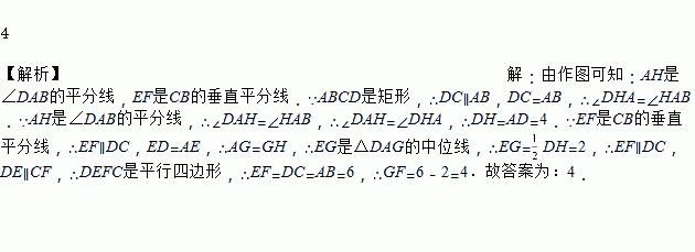 如图,在矩形ABCD中,AB=6,若AD=4,由作图痕迹可得GF=_______.