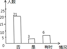 (2)说否的有21人,说是的有3人,说有时的有6人.