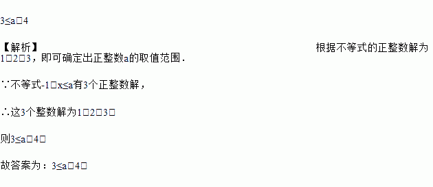 关于x的不等式﹣1<x≤a有3个正整数解,则a的取值范围是______.