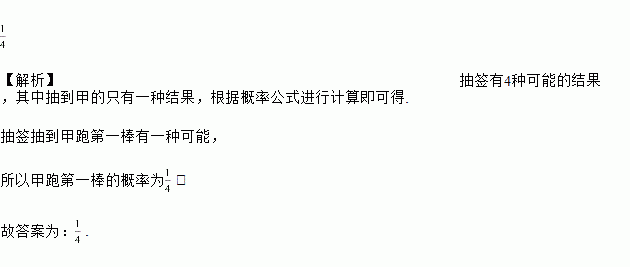 八年级(1)班安排了甲、乙、丙、丁四名同学参加4×100米接力赛,打算抽签决定四人的比赛顺序,则甲跑第一棒的概率为______.
