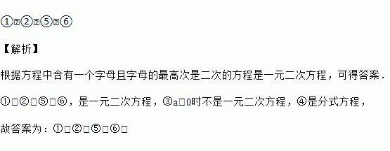 ①x2=0;②(a2+1)x2+3x+1=0(a为常数);③ax2+bx+c=0(a,b,c为常数);④2x-