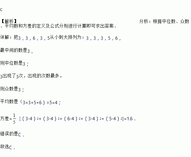 对于一组统计数据3,3,6,5,3.下列说法错误的是( )