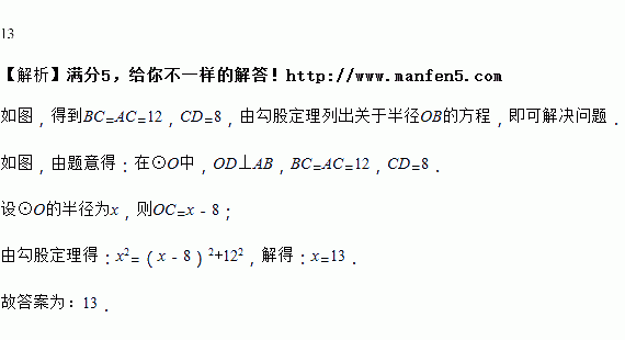 把一个球放在池塘中,球漂浮在水面上.当水结冰后,从冰中拿出球,留下一个冰坑.经测量,冰面圆的直径为,冰坑的最大深度为,则球的半径为_____.